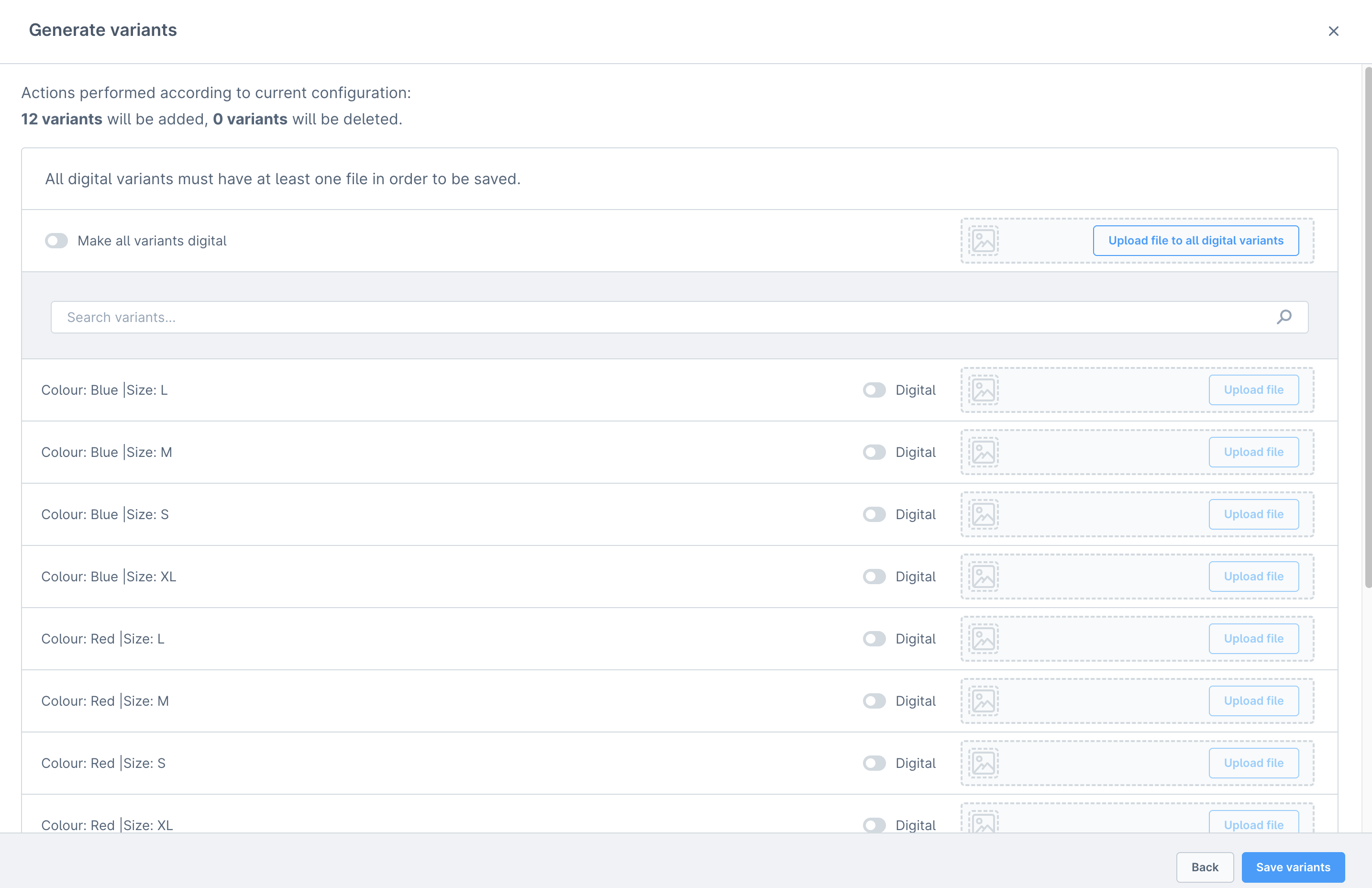button, we will see a summary of what will happen. In our case, we will get 12 new variants based on the properties I have selected.